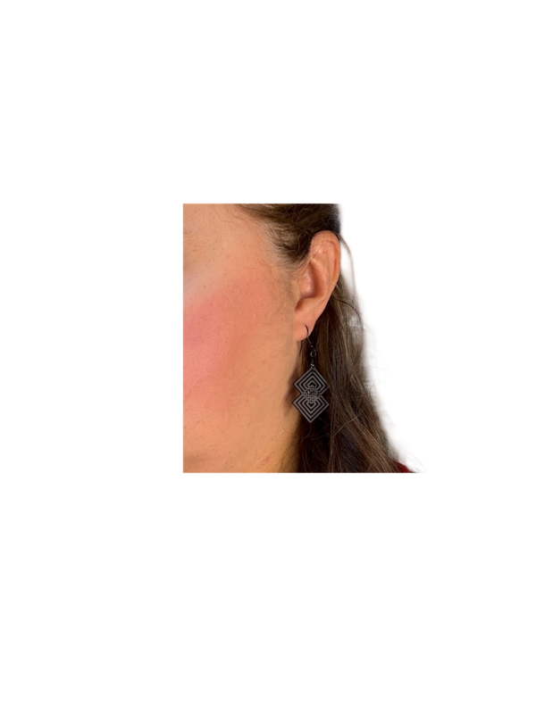 This is a geometric design with squares overlapping on the diagonal. They are 3D printed. Check my blog for more information about the process and material used to print the earrings. They are very lightweight unlike other costume jewelry. The hooks are stainless steel, which is gentle on your skin and prevents irritation.